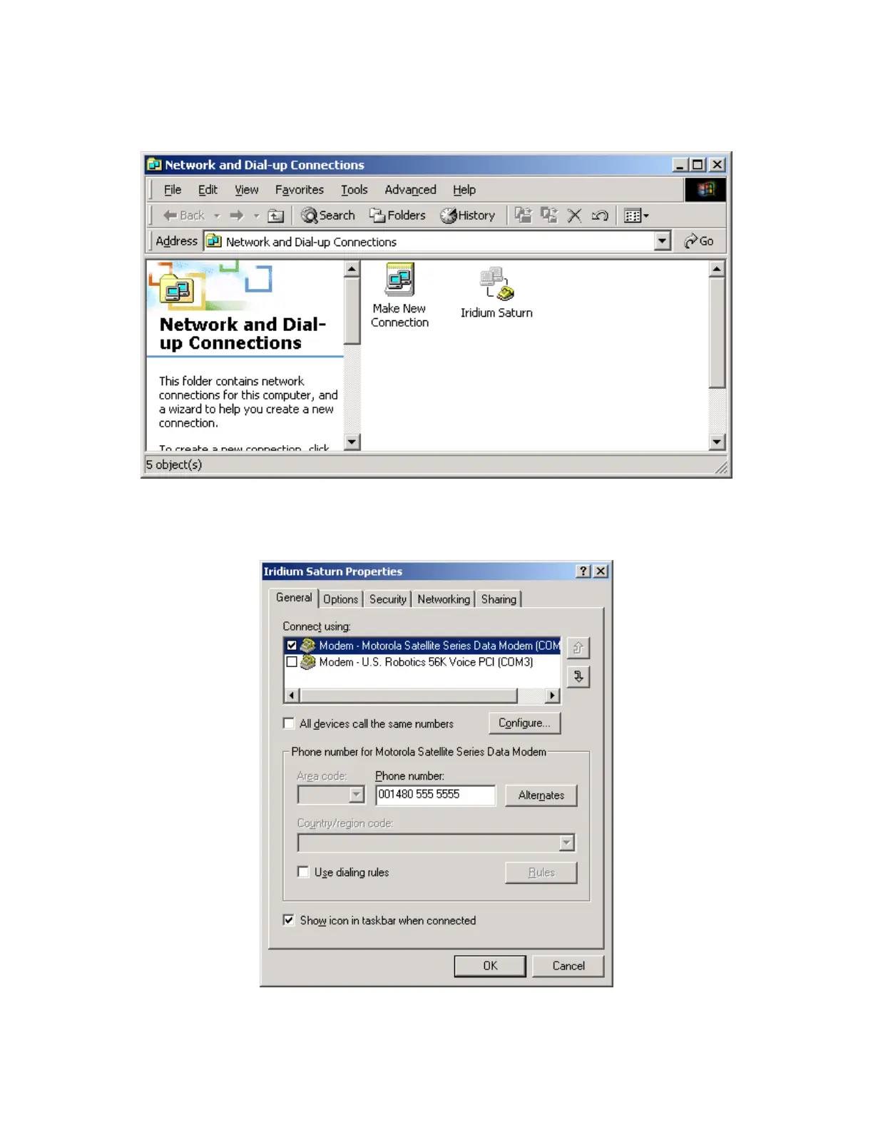 12. In the Dial-Up Networking window, right click on your new dial-up connection and select
