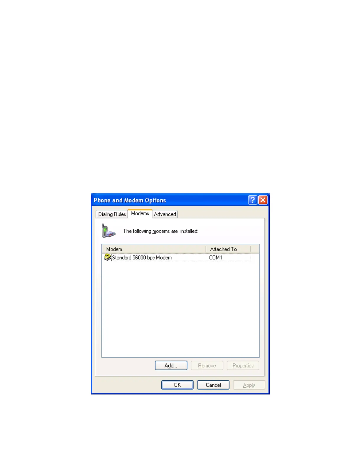 Add… to open the Add Hardware Wizard for installing a new modem. This will begin the