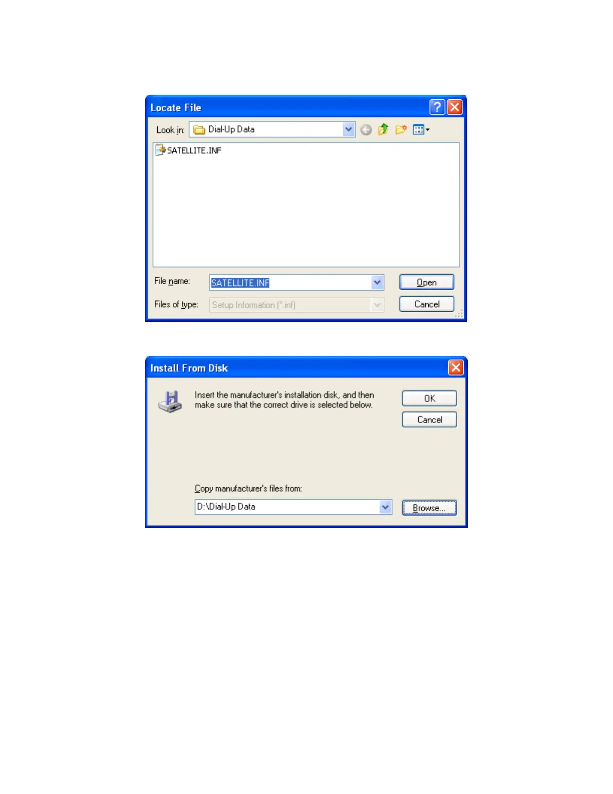 8. Browse to the Dial-Up Data directory on the CD, and then click Open.