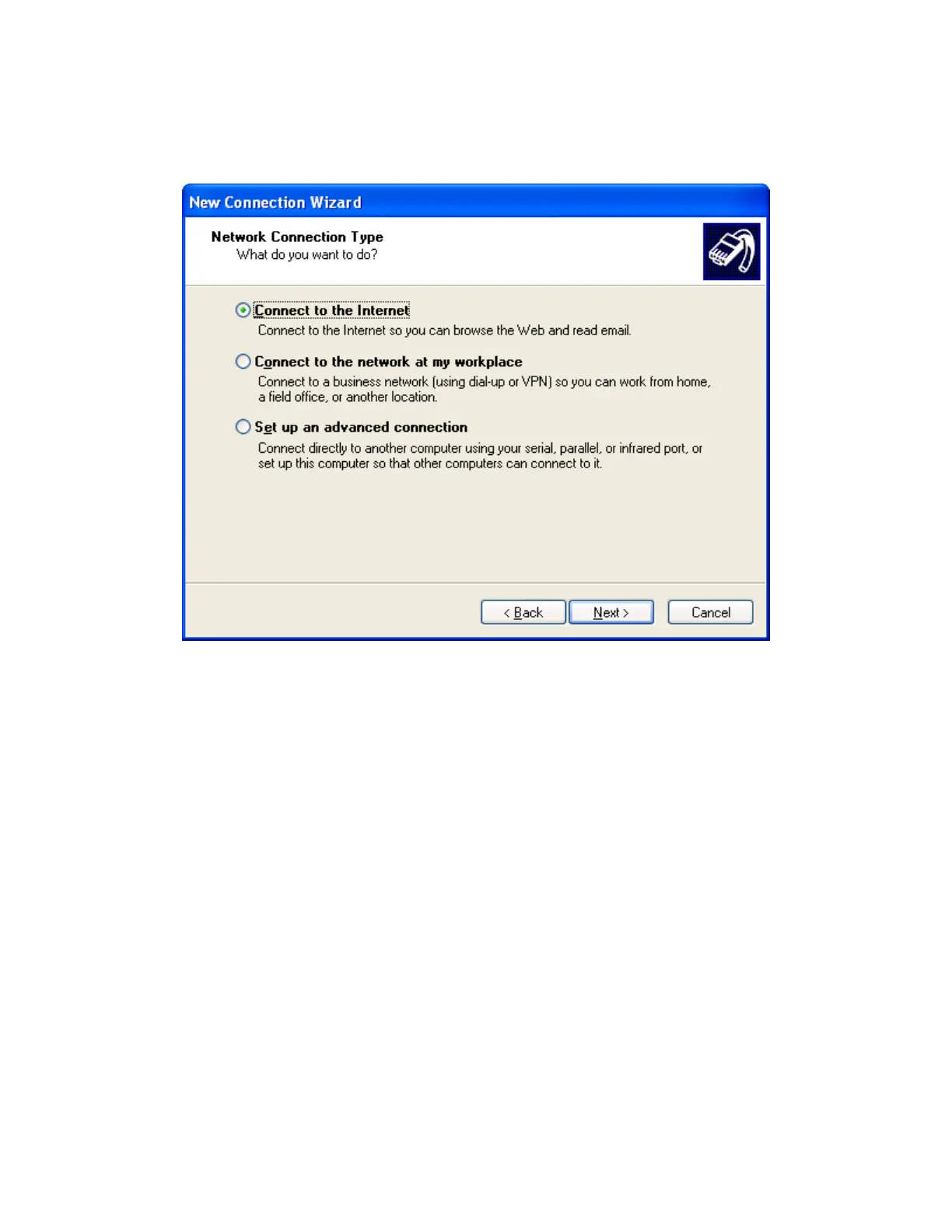 Internet. Click Next >.