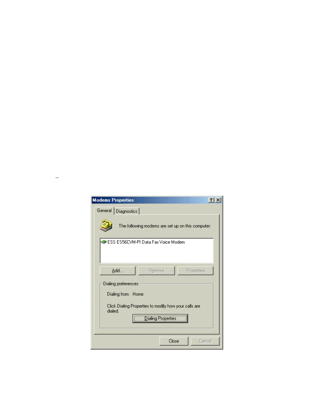 Note: If no modems are currently installed on your computer, you will not see the Modem