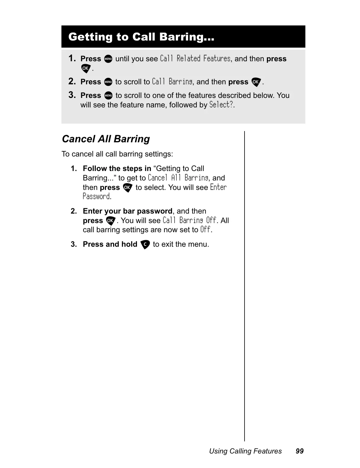 Call Barring Off