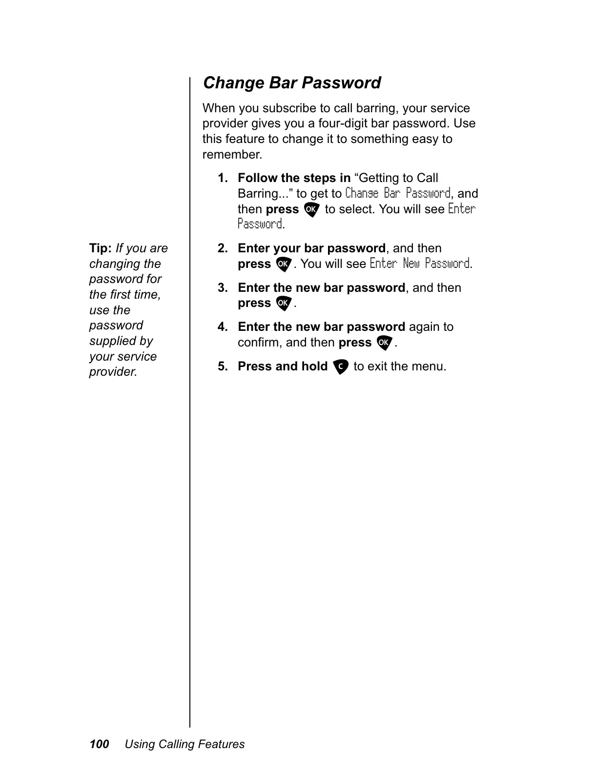 Change Bar Password