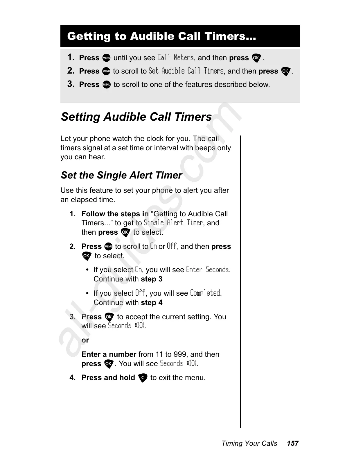 Set Audible Call Timers