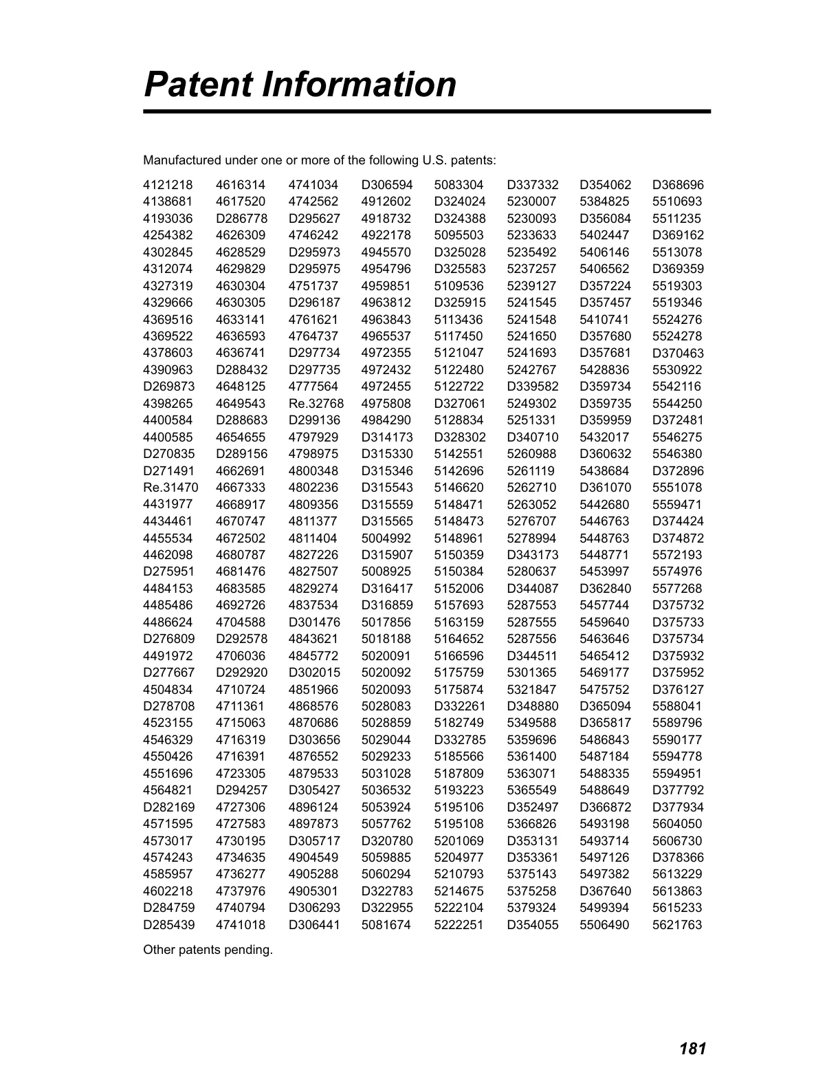 0DQXIDFWXUHGXQGHURQHRUPRUHRIWKHIROORZLQJ86SDWHQWV