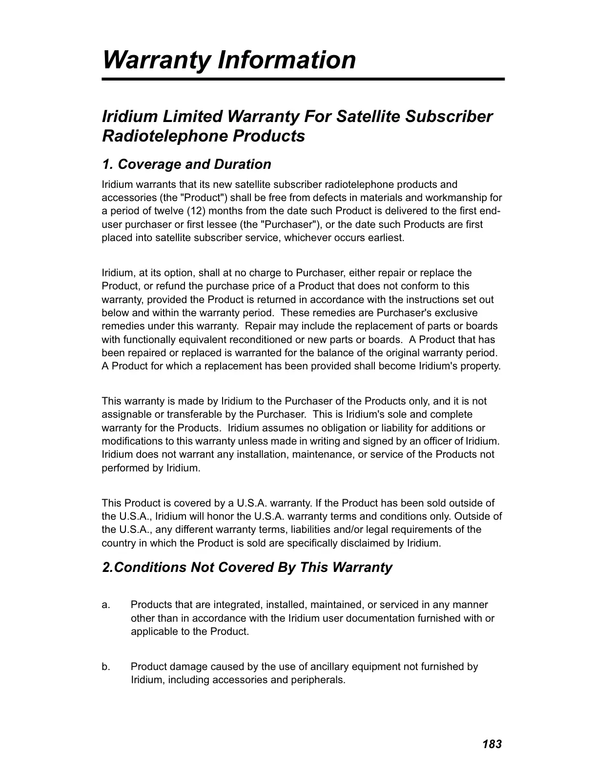,ULGLXPZDUUDQWVWKDWLWVQHZVDWHOOLWHVXEVFULEHUUDGLRWHOHSKRQHSURGXFWVDQG