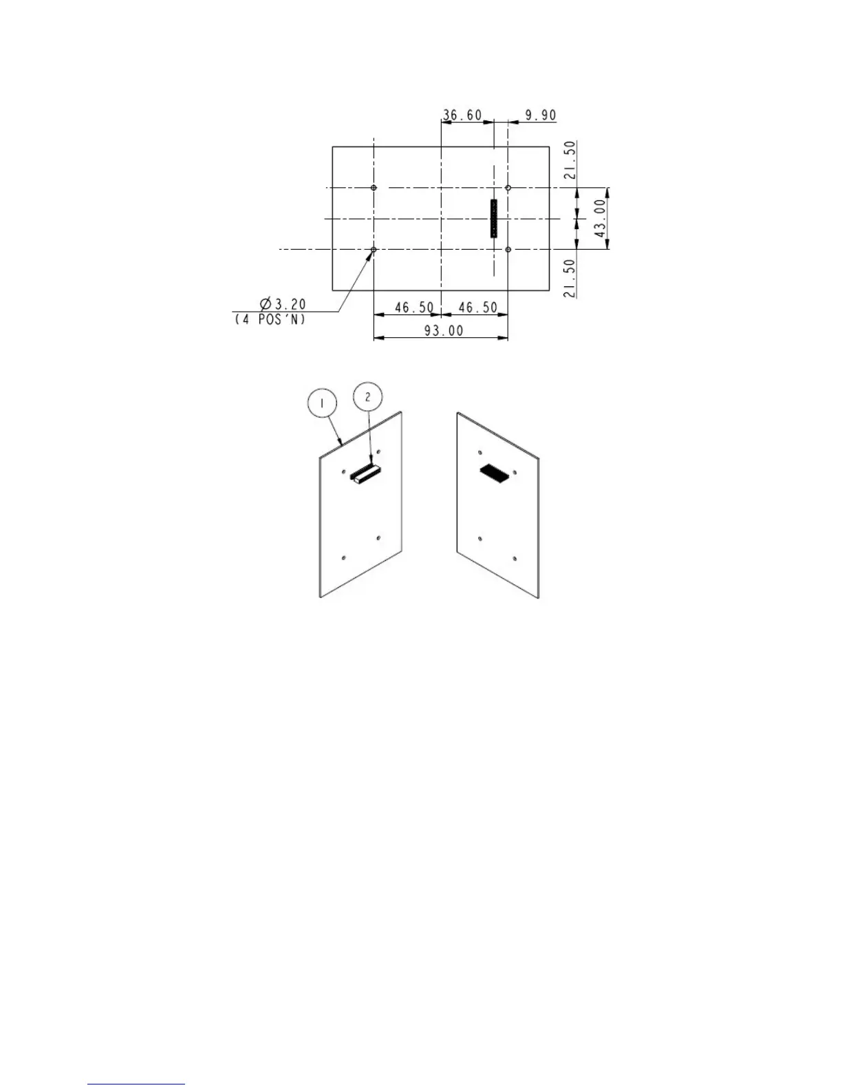 Figure 5: Mechanical mounting foot print for use when stacking the 9601 ISU with a developer provided