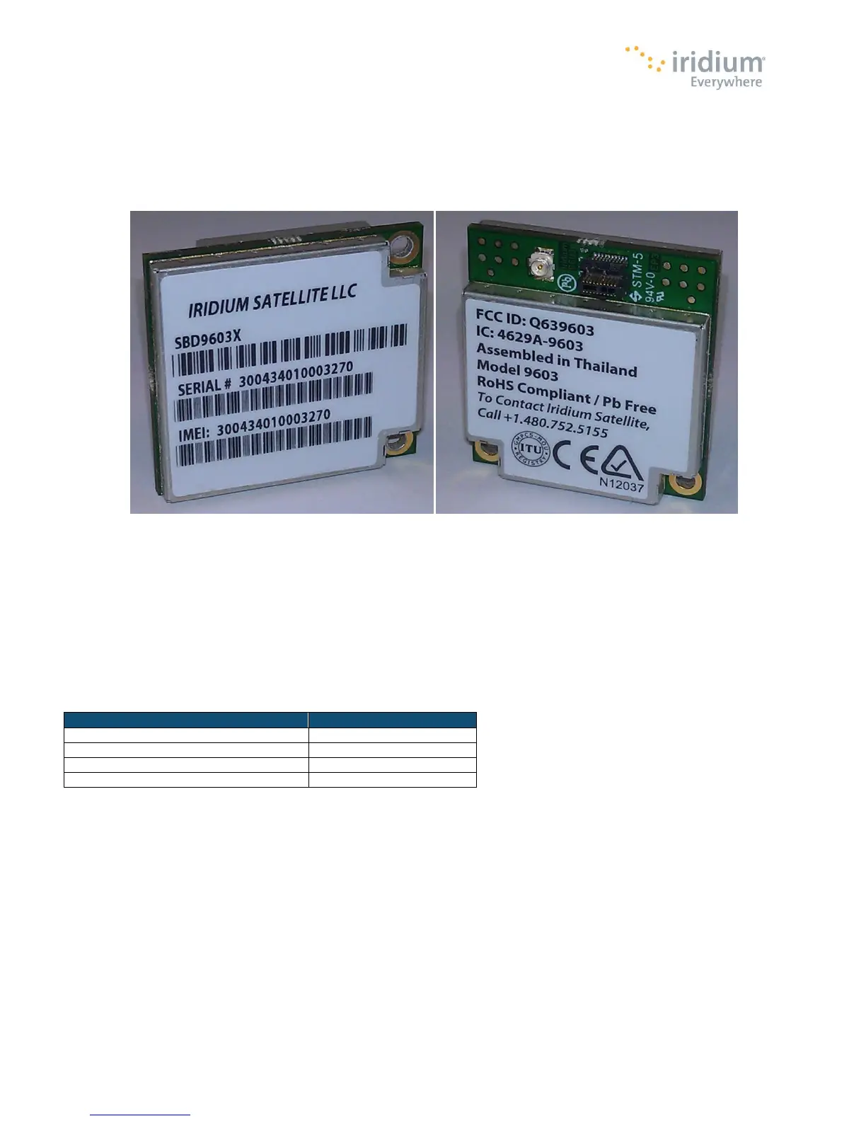 For illustrative purposes a picture of the Iridium 9603 SBD Transceiver Module* is shown in Figure 1.