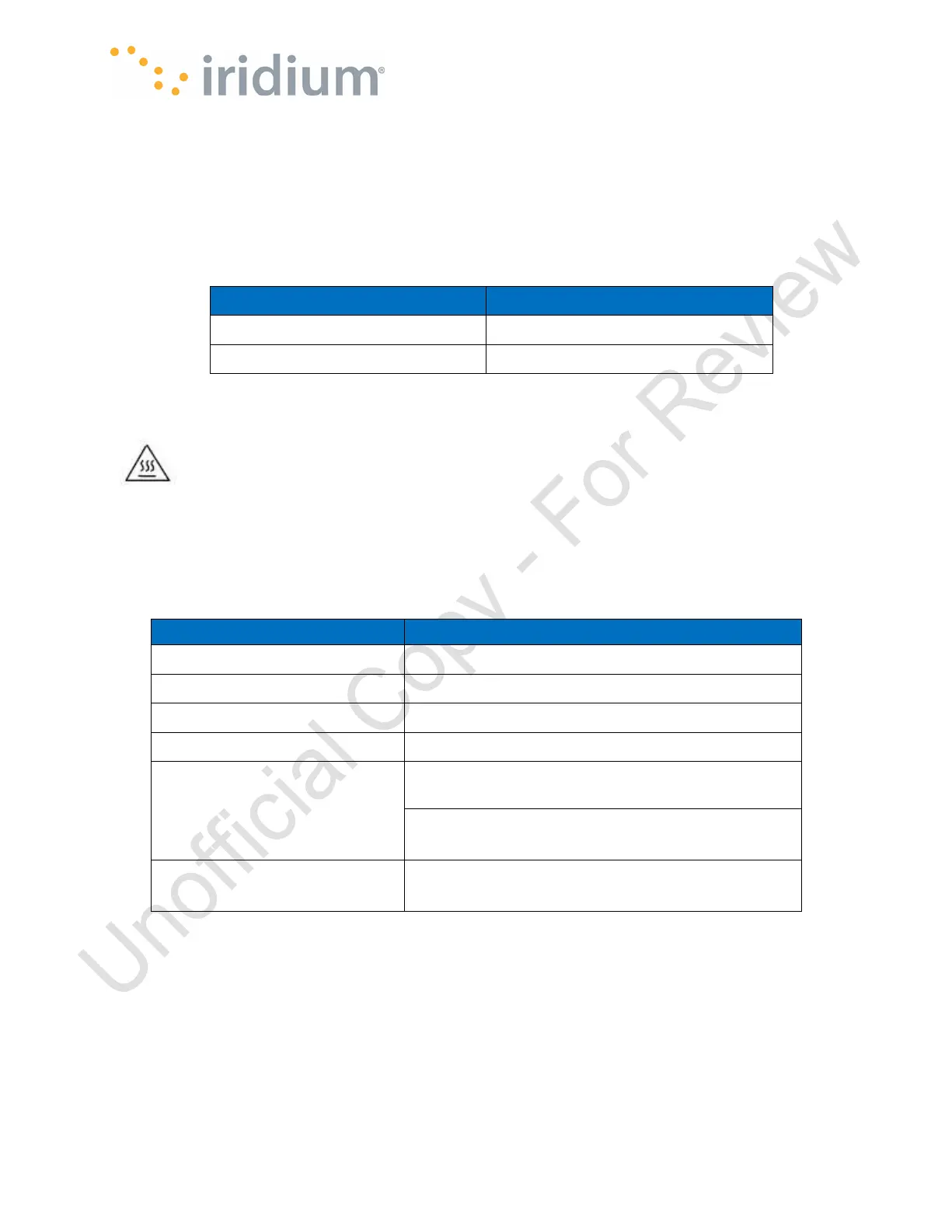 When transmitting or when ambient temperatures exceed 60 degrees C, the Iridium