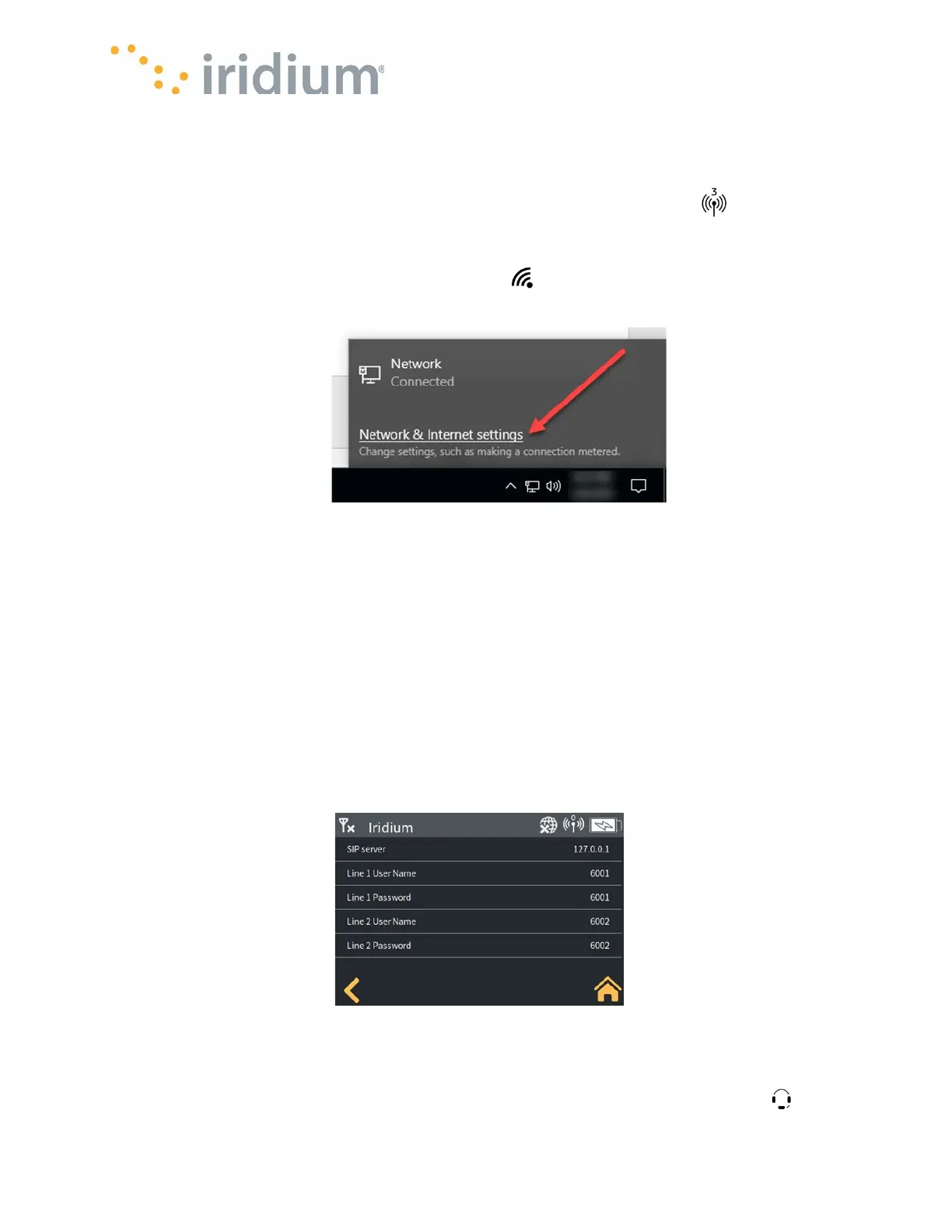 • You will need to configure the SIP phone to connect to the SIP server in the Iridium GO! exec.