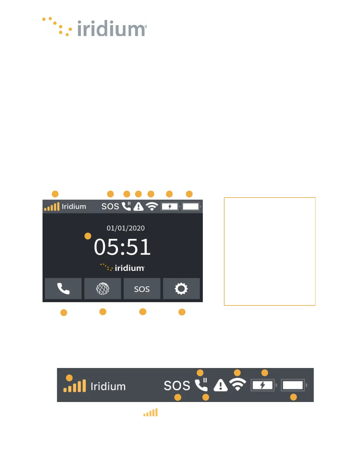 The Iridium GO! exec shows a status bar across the top of the display regardless of what else is