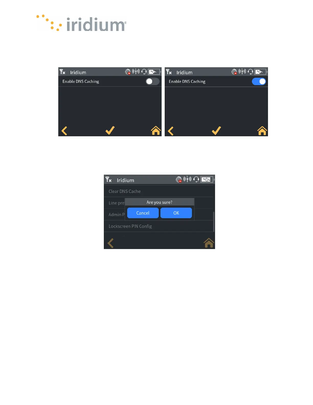 accessing the internet via satellite data. The DNS cache can be enabled/disabled by toggling the