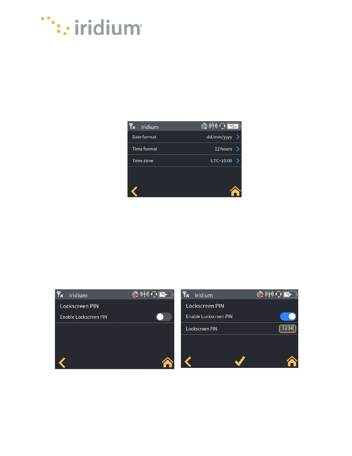 The Iridium GO! exec supports an optional lock screen PIN to protect against accidental