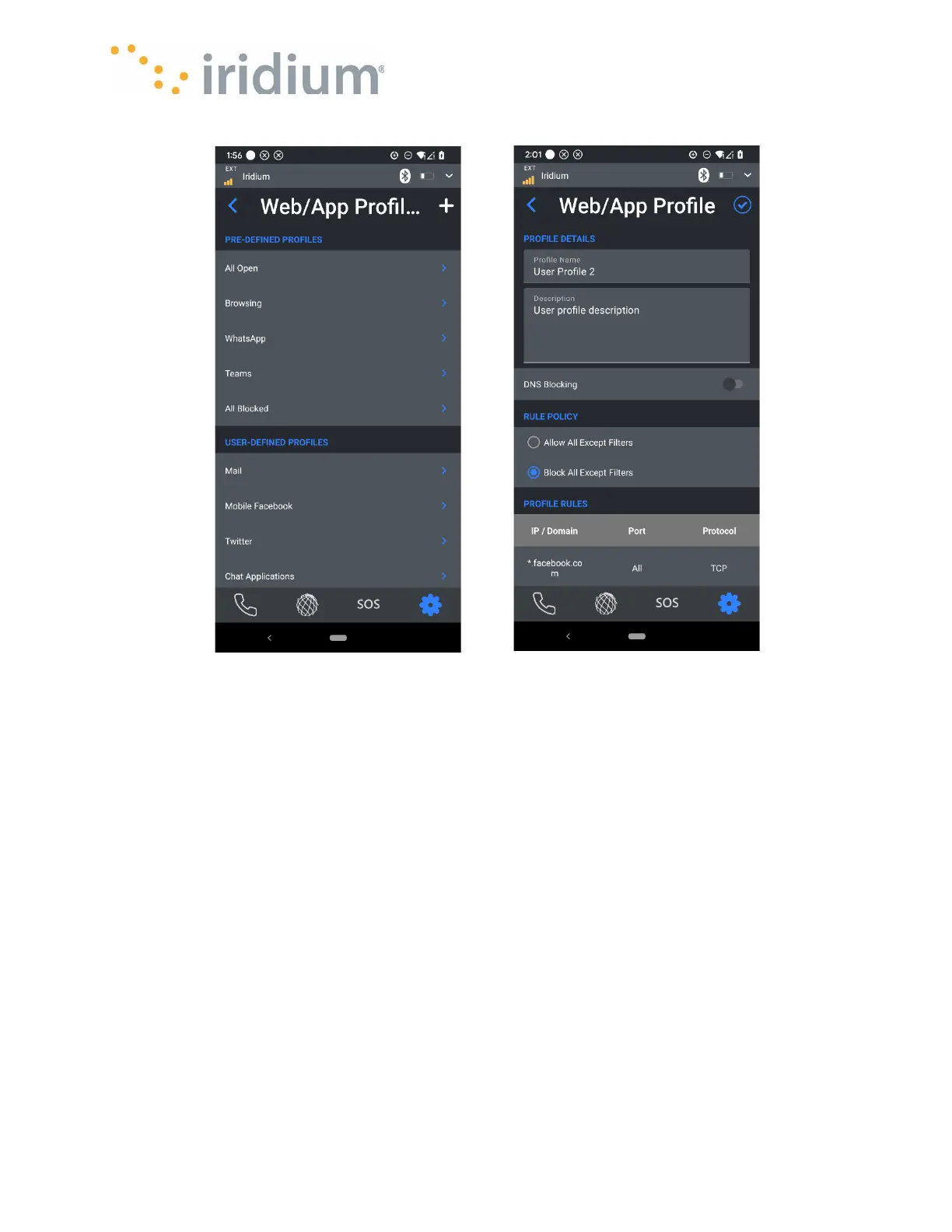 select one from a list of devices currently connected to the Iridium GO! exec.