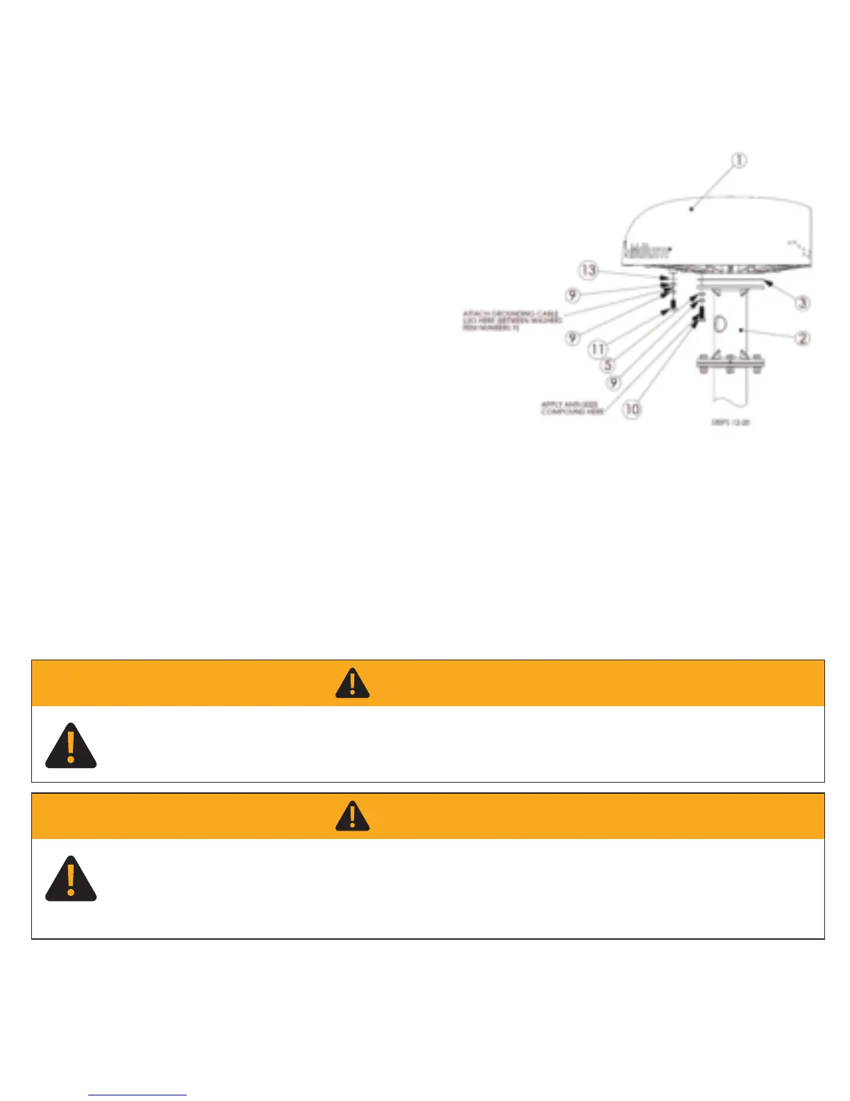 Note: Grounding lug on radome base must be facing aft or “rear”