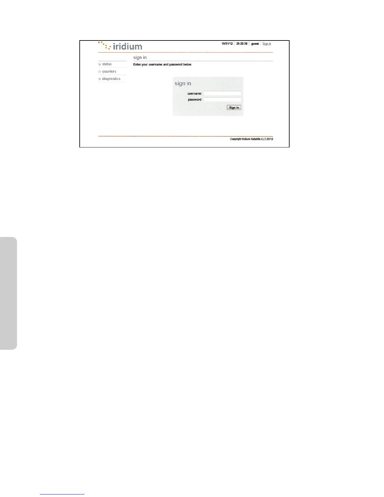Select Status to link to Counters, Diagnostics, Conguration, and Admin Password. This page provides: