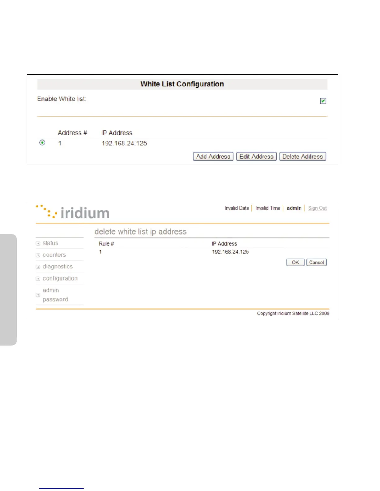2. IP addresses are removed from the list by selecting the radio button by the desired address and clicking the