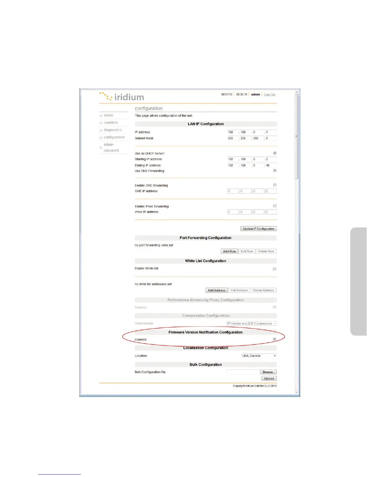 To disable this feature, when logged in as Administrator, under Conguration, de-select the checkbox.