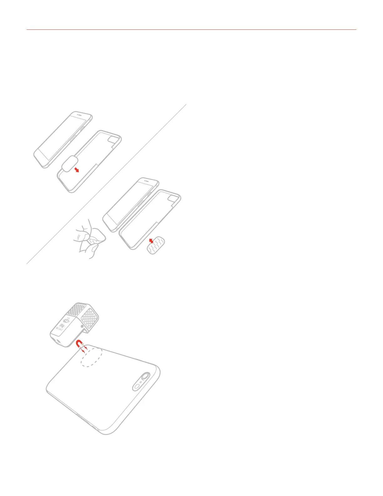 2. Attach the iRig Mic Cast 2 over the plate: thanks to the built-in magnets the microphone will remain fixed in