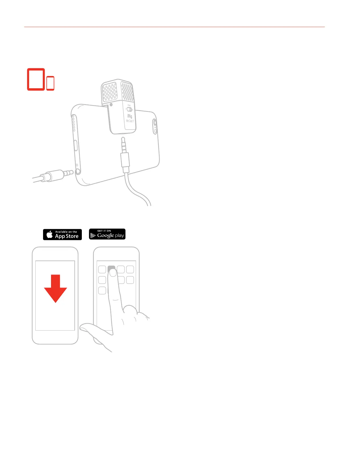 3. Connect the iRig Mic Cast 2 to the device with the included TRRS cable. Please note that smartphone