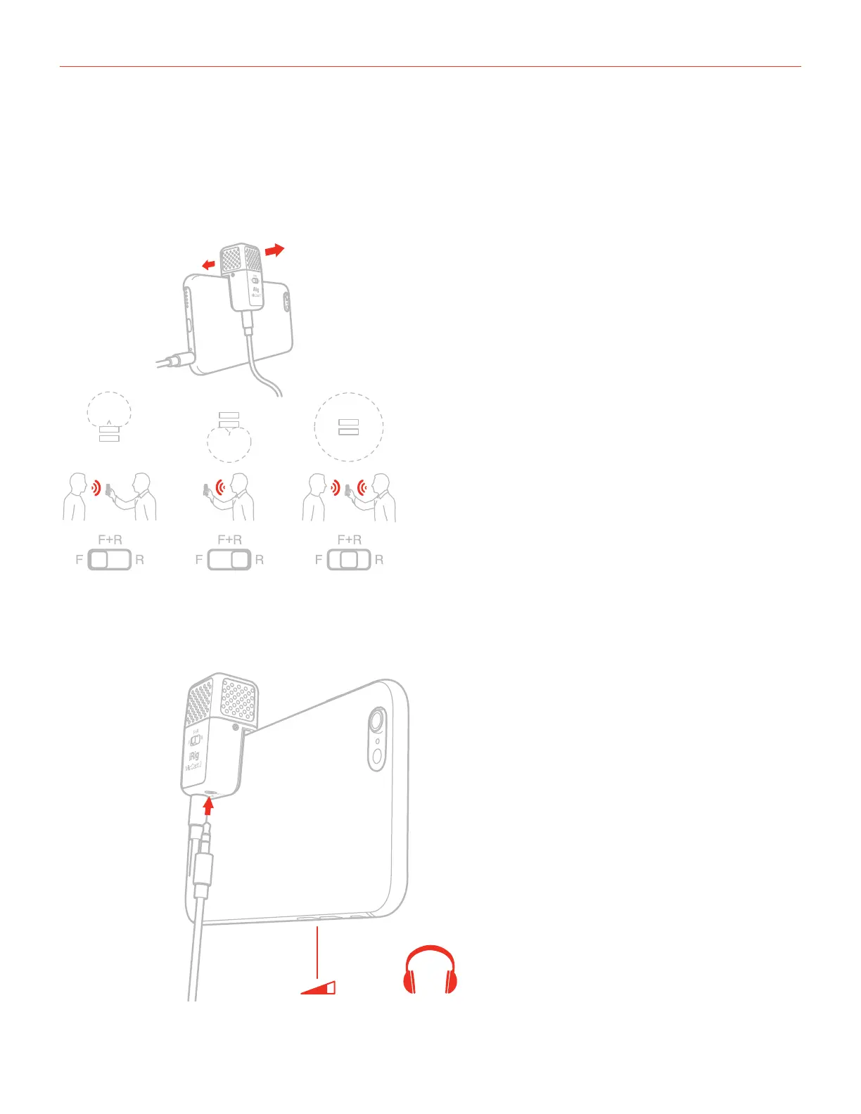 • Single capsule cardioid (R, rear capsule): ideal for podcasts or voice memos;