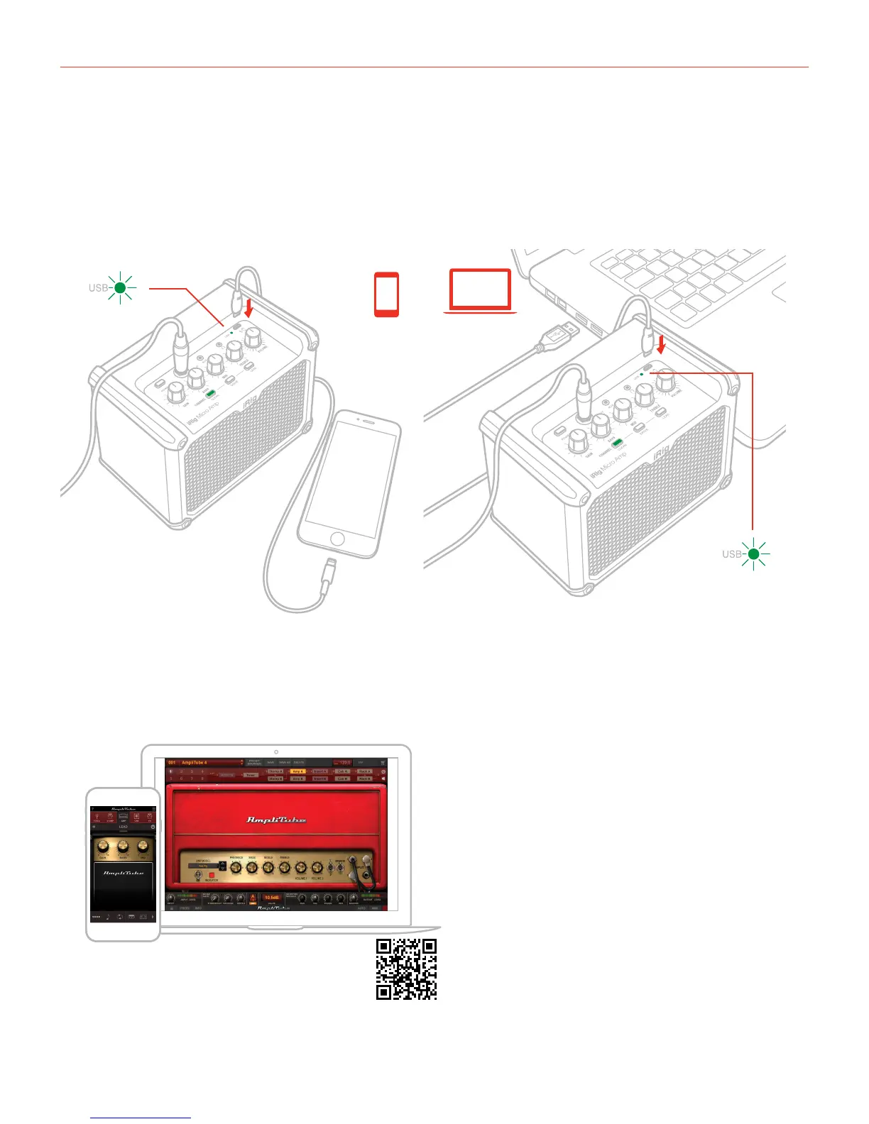 3. Connect the iRig Micro Amp to an iOS device or MAC/PC via the micro-USB connector. The USB LED will