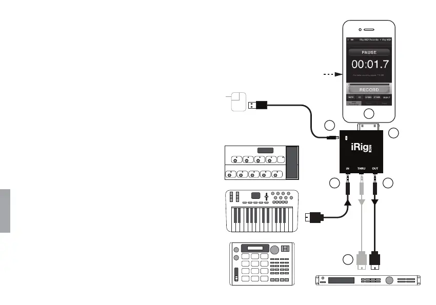Sie den MIDI-OUT-Anschluss des iRig MIDI an den MIDI-IN-Anschluss