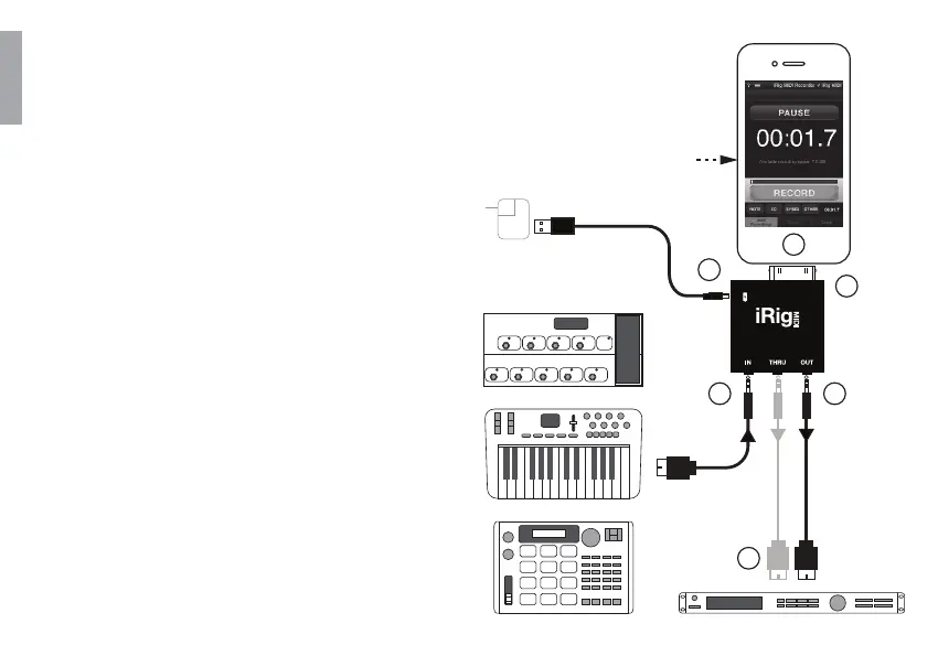 1. Connect iRig MIDI to the 30-pin connector on your iOS device.