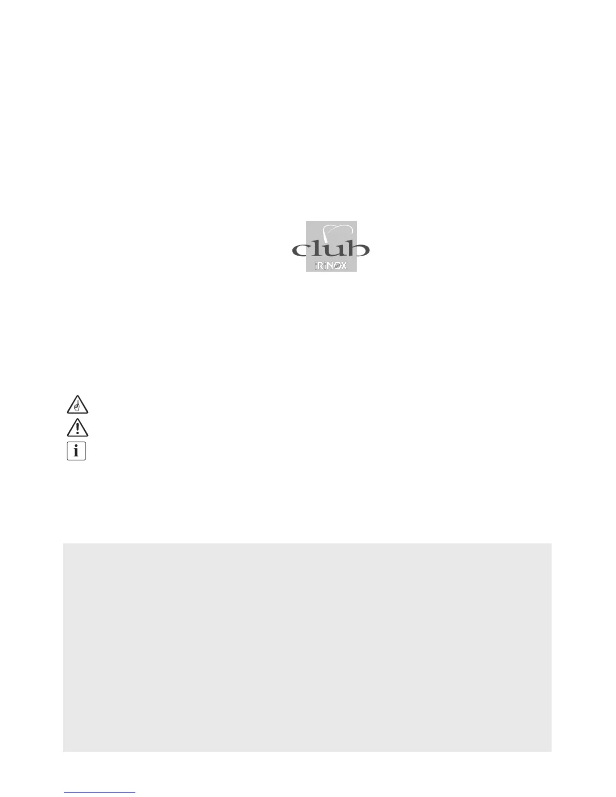 nel ringraziarla per la fiducia accordataci con la scelta di un conservatore IRINOX, la invitiamo ad un’attenta lettura