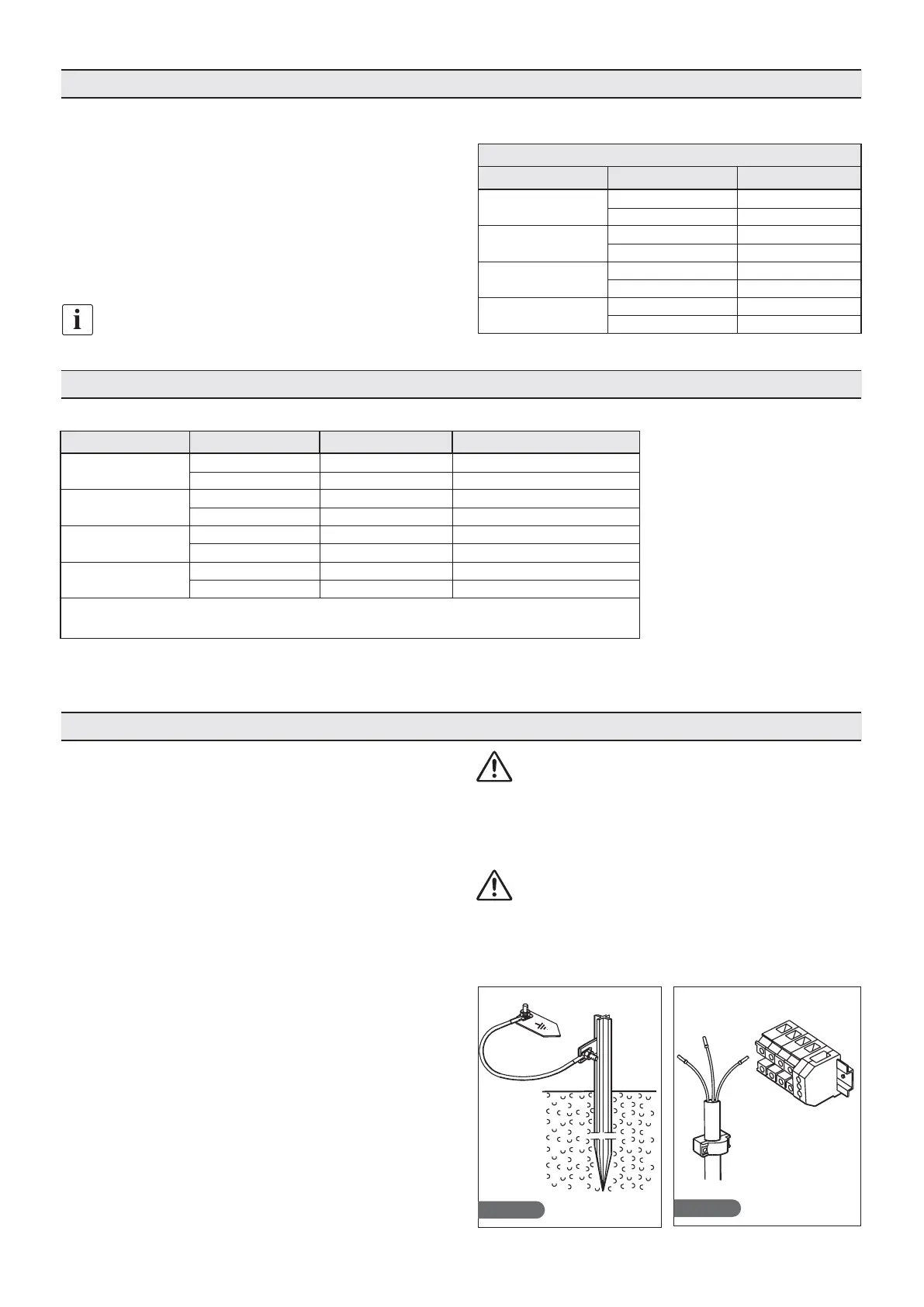 The size of the connection cables must comply with