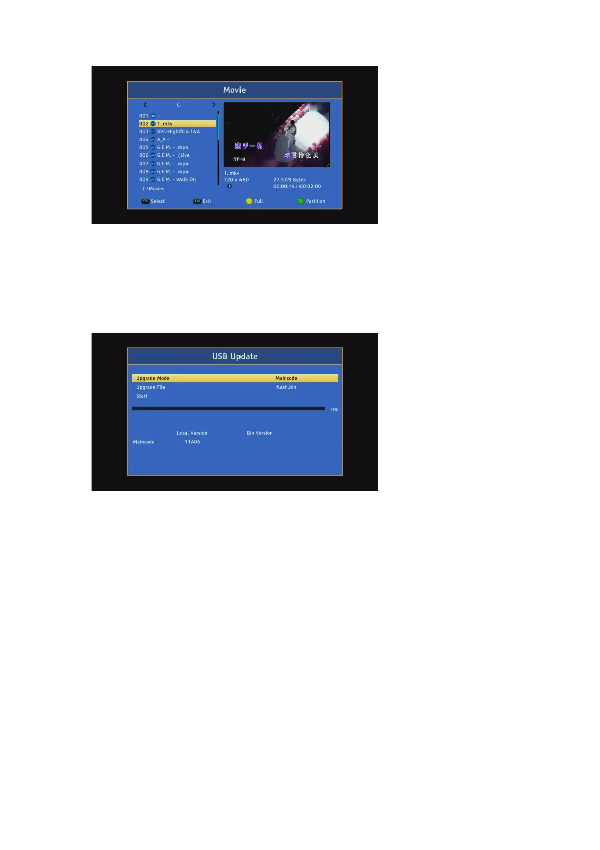 Este menú se utiliza para actualizar el software del receptor. Por favor, obtenga el último software