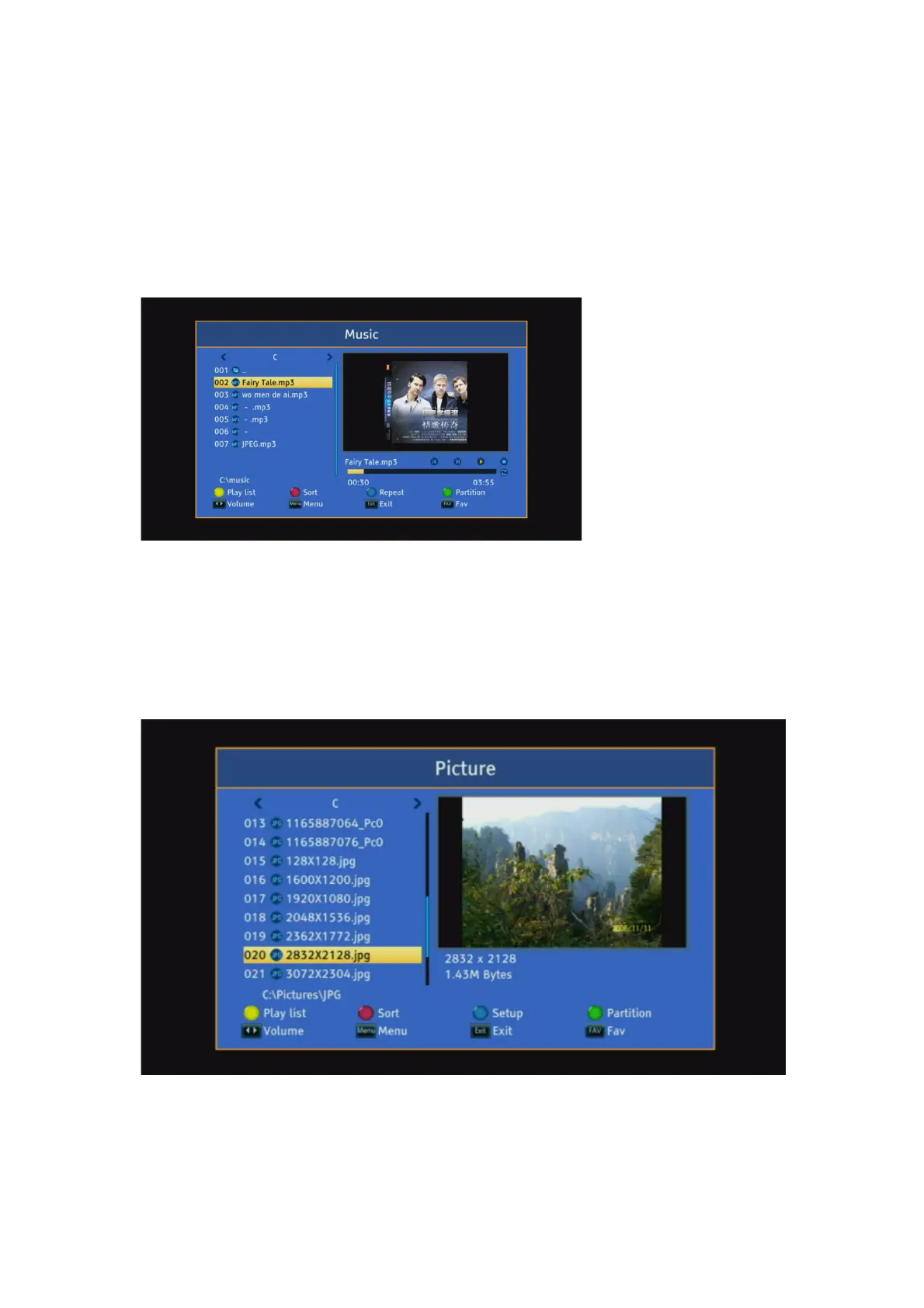 In this menu, you can view photographs in JPEG, BMP format. There are a few additional functions