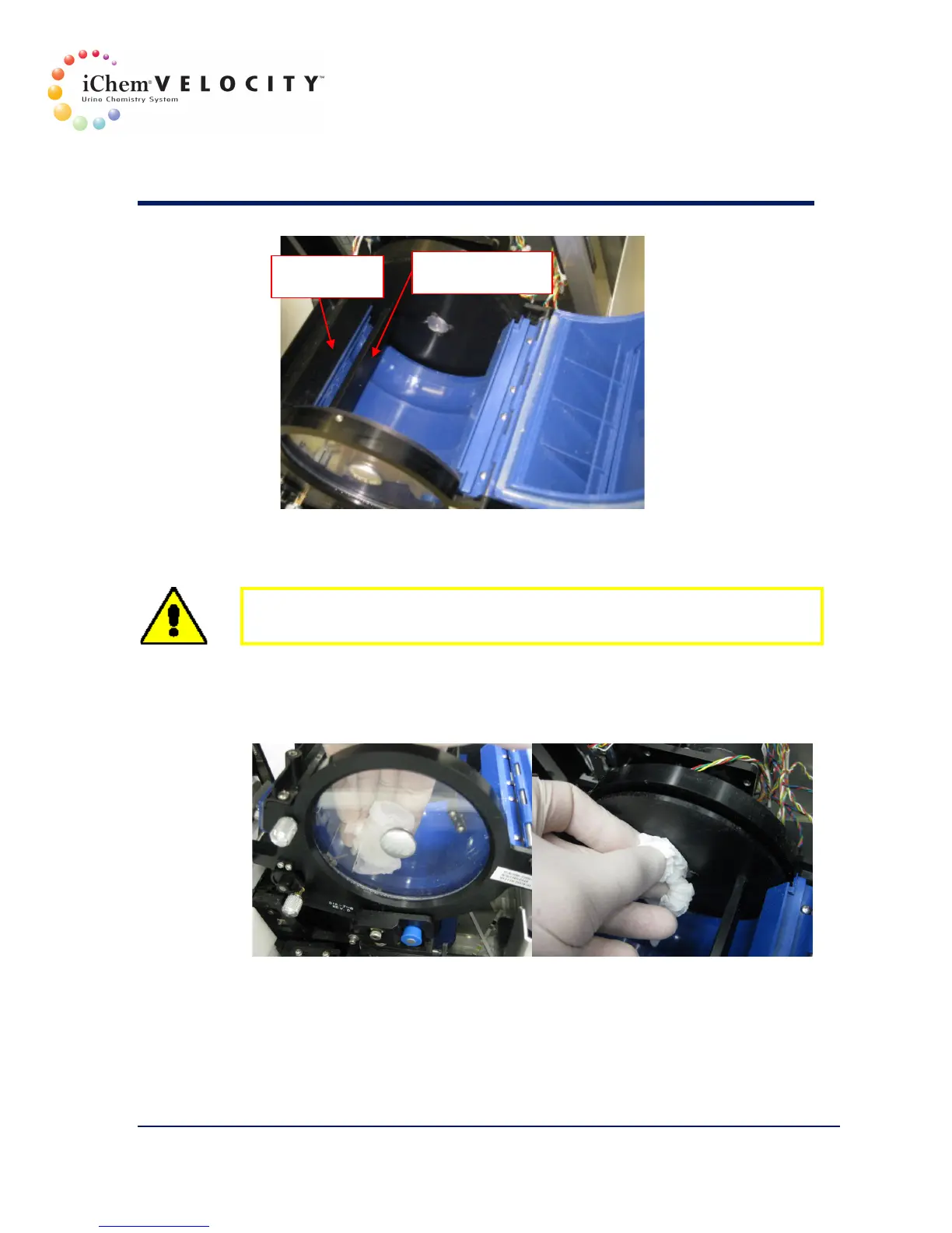 CAUTION: Use only lint free tissues. Using a humid paper towel inside