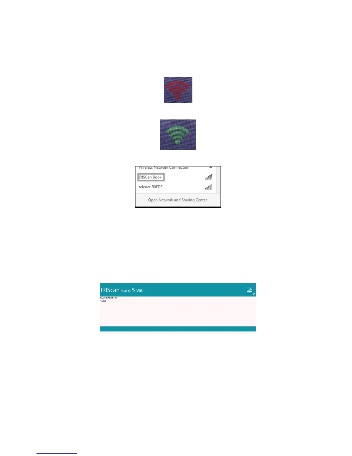 Note: when connected to the IRIScan Book network, you do not have access to the Internet.