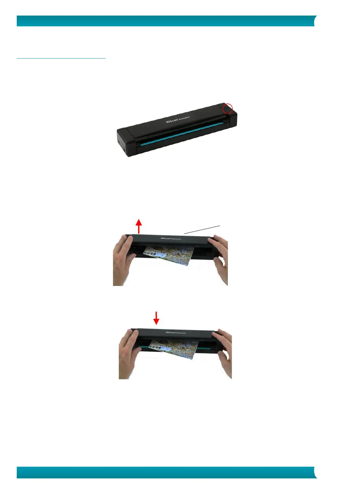 1. Open the cover by holding the scanner with one thumb on the feeder and another thumb on the cover.
