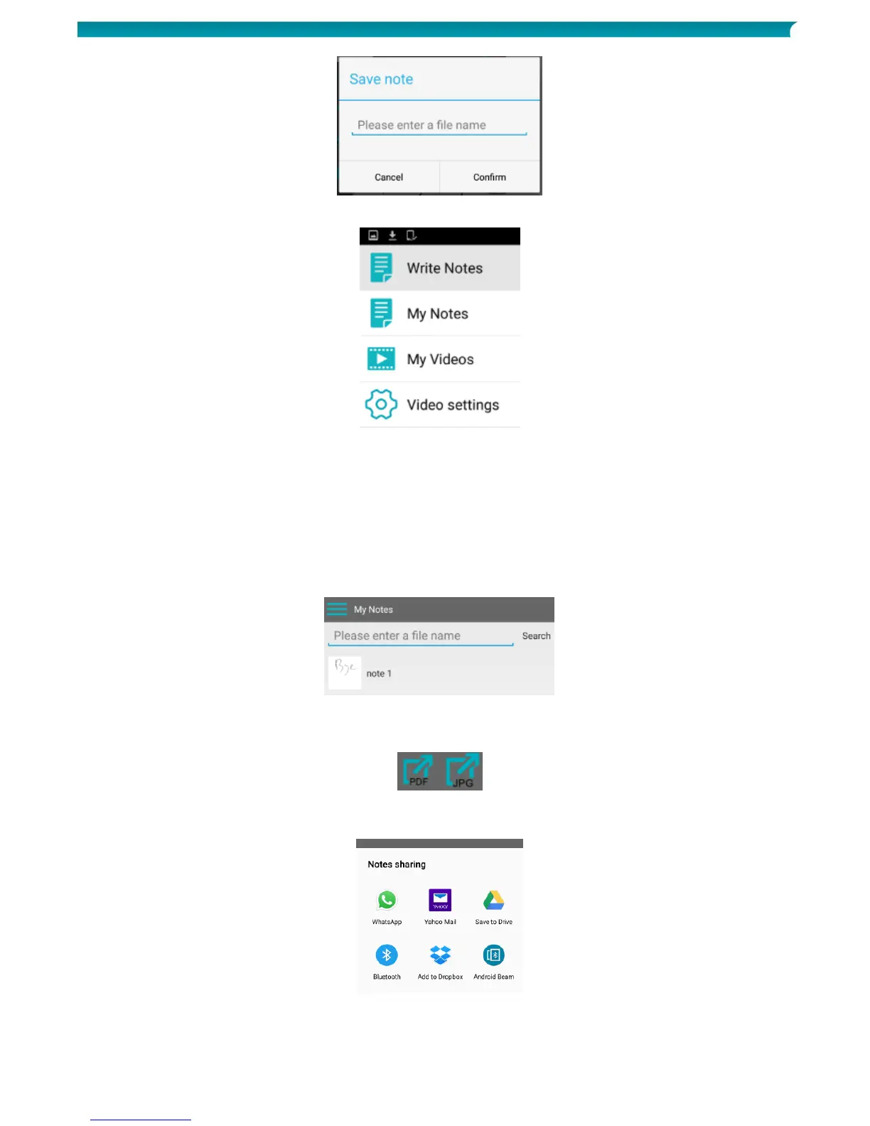 The notes you have stored in My Notes can be shared as JPG and PDF file on your favorite social media.