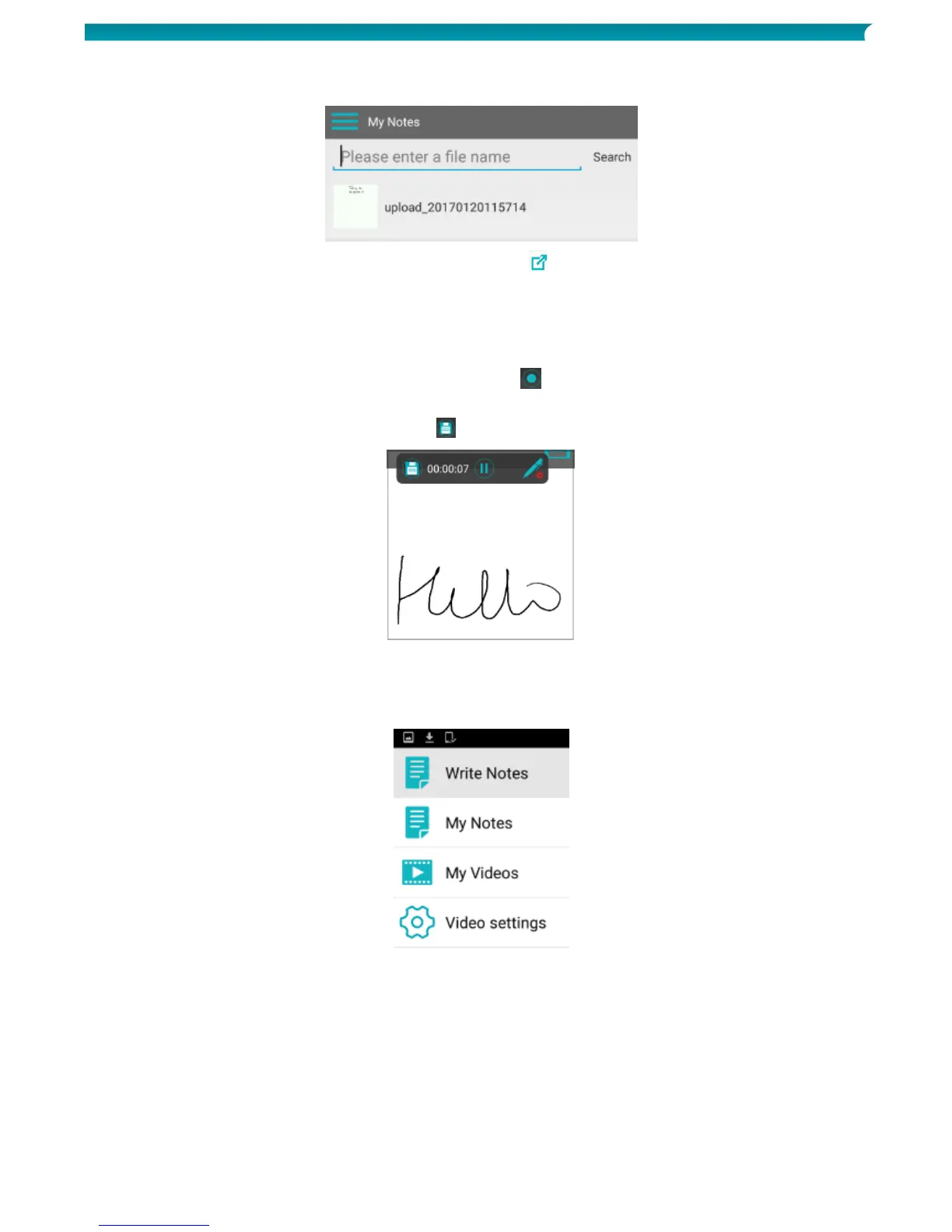 1. To record your writing process, tap the record icon ( ).
