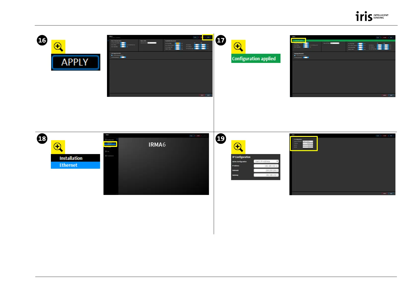Click on ETHERNET to get to the IP configuration of IRMA 6. In the section “IP Configuration” you can, if needed, set: