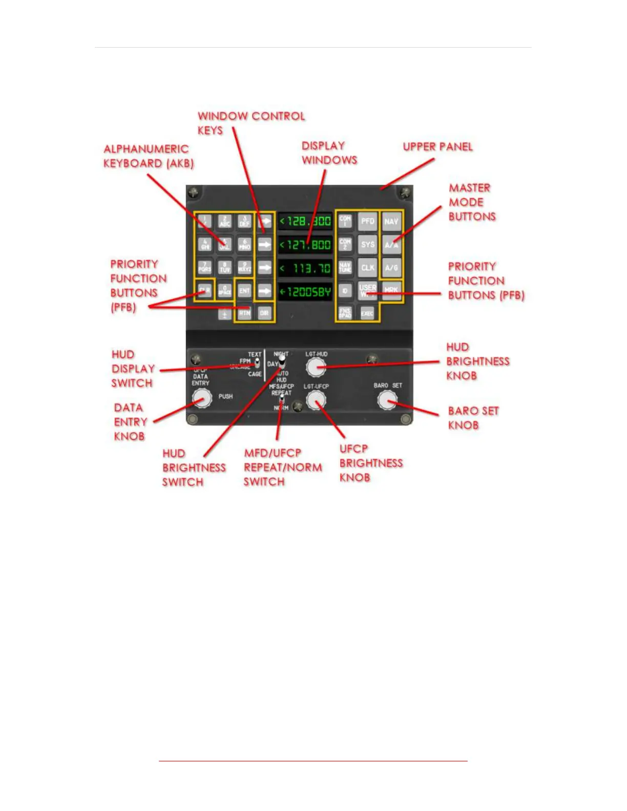 The UFCP pilot interface consists of an upper and a lower panel. The UFCP provides