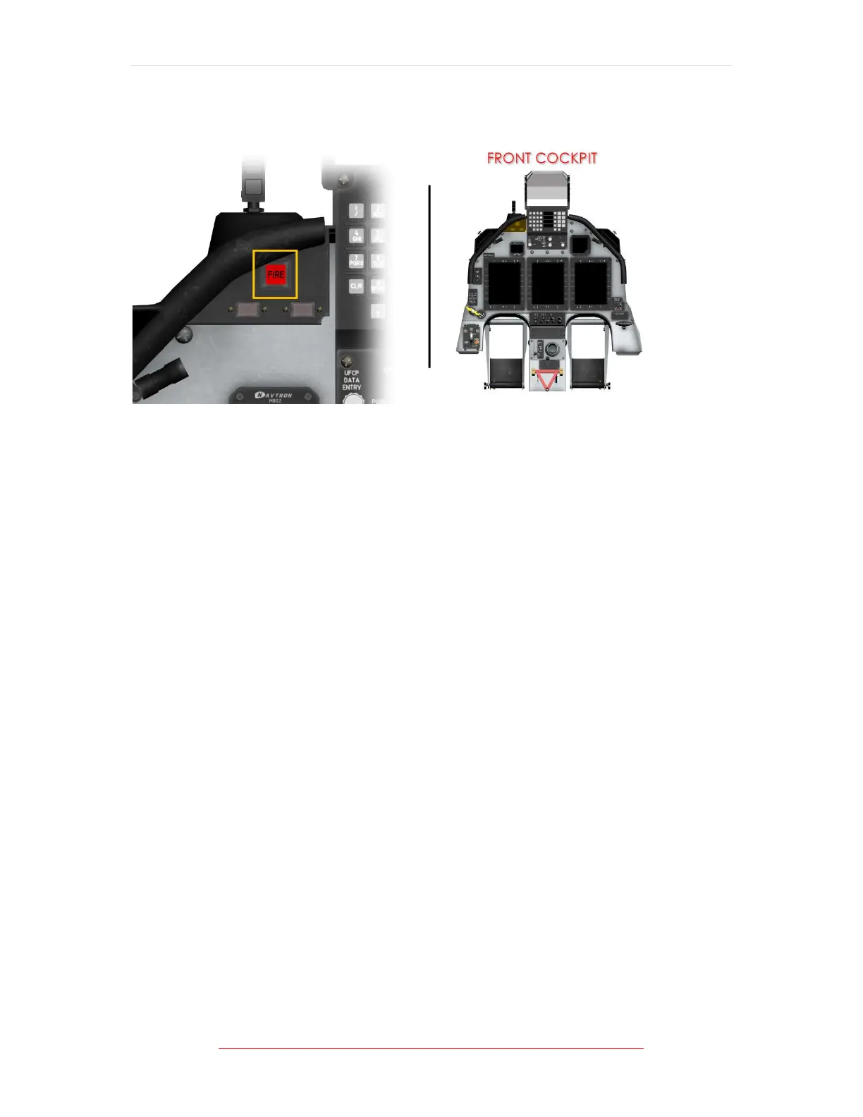 A fire warning system test switch, labelled FIRE, is provided on the front cockpit left