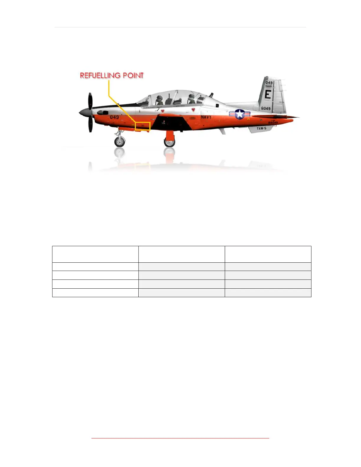 single-point refuelling system. Approximately 100 pounds additional fuel is