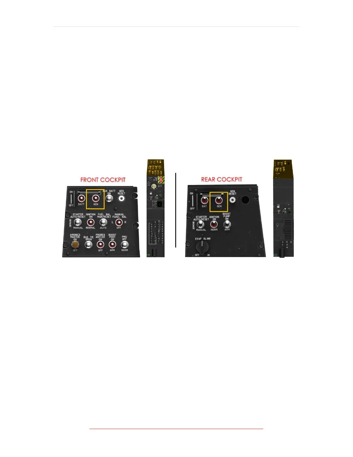 from either cockpit. Moving the generator switch to ON in either cockpit turns