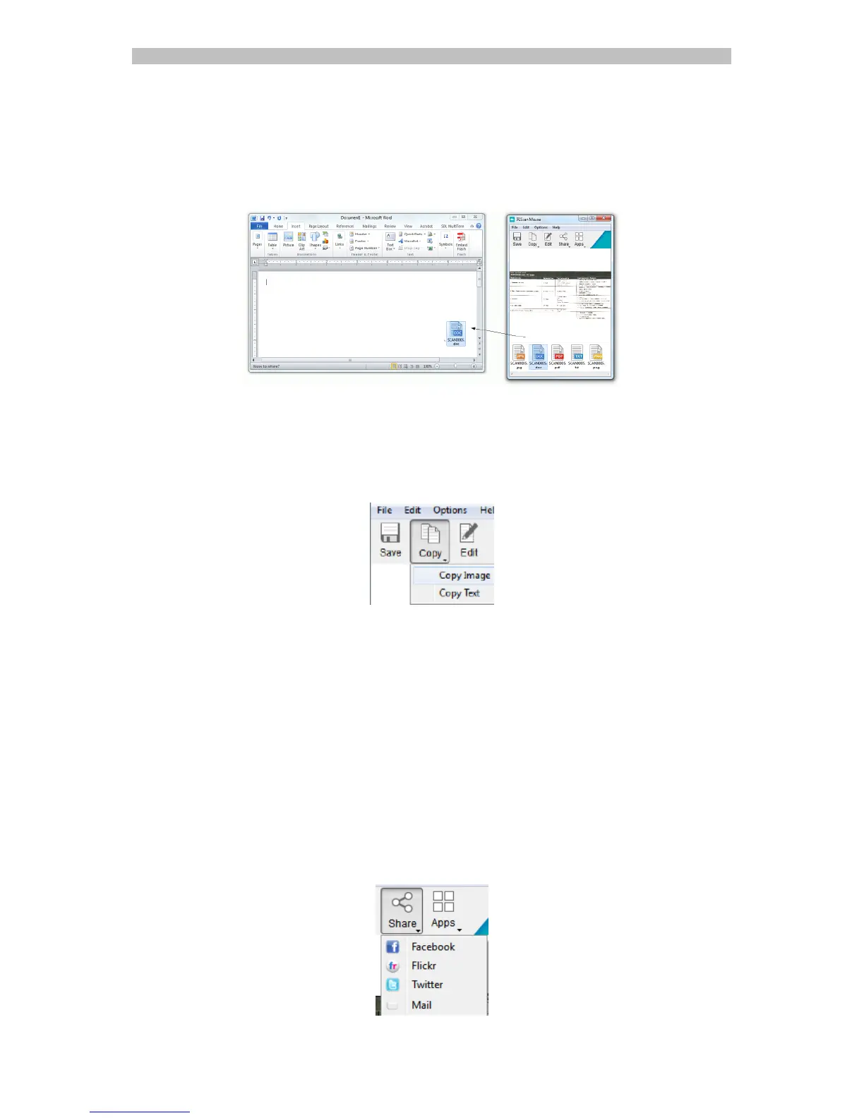 Note: when using the Share functions, the scans are always sent as images.