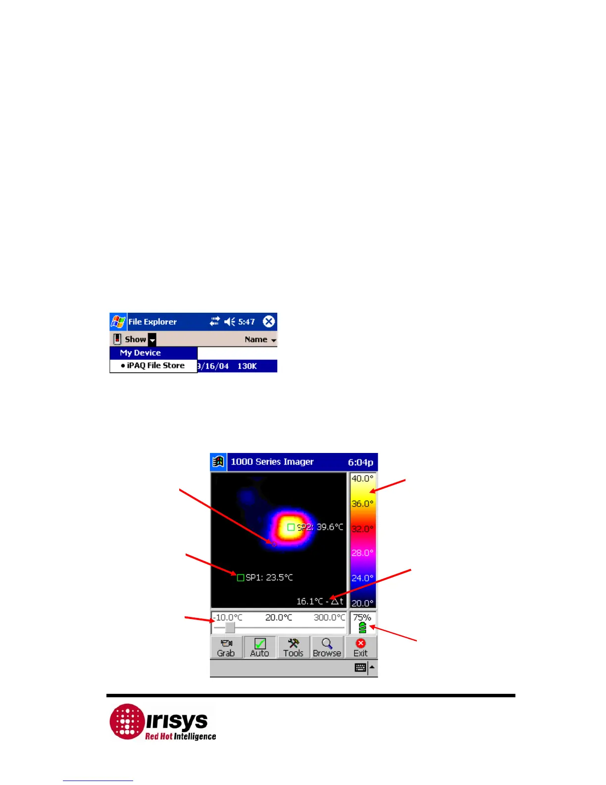 Figure 5: Screenshot of IRISYS 1011 Imager ‘Pocket PC’ Software