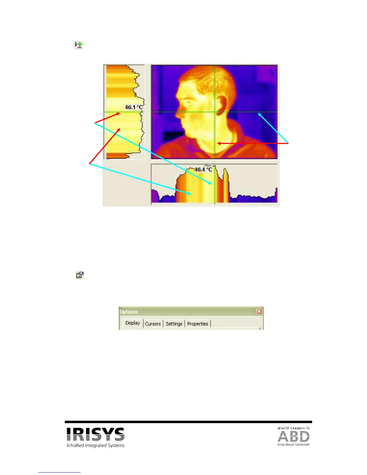 intensity plot lines on the thermal intensity plots can be moved to analyse temperatures in the plots. Double-