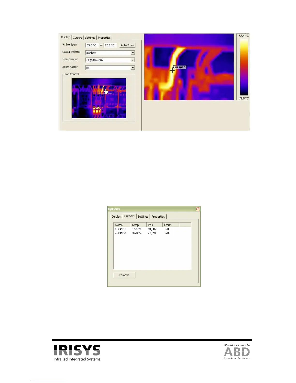 origin (bottom left of image) and the emissivity value associated with the cursors.