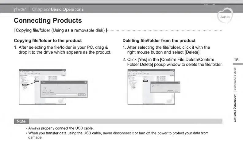 When you transfer data using the USB cable, never disconnect it or turn off the power to protect your data from