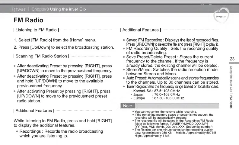 folder as following format. TUNERYYMMDD_XXX.MP3