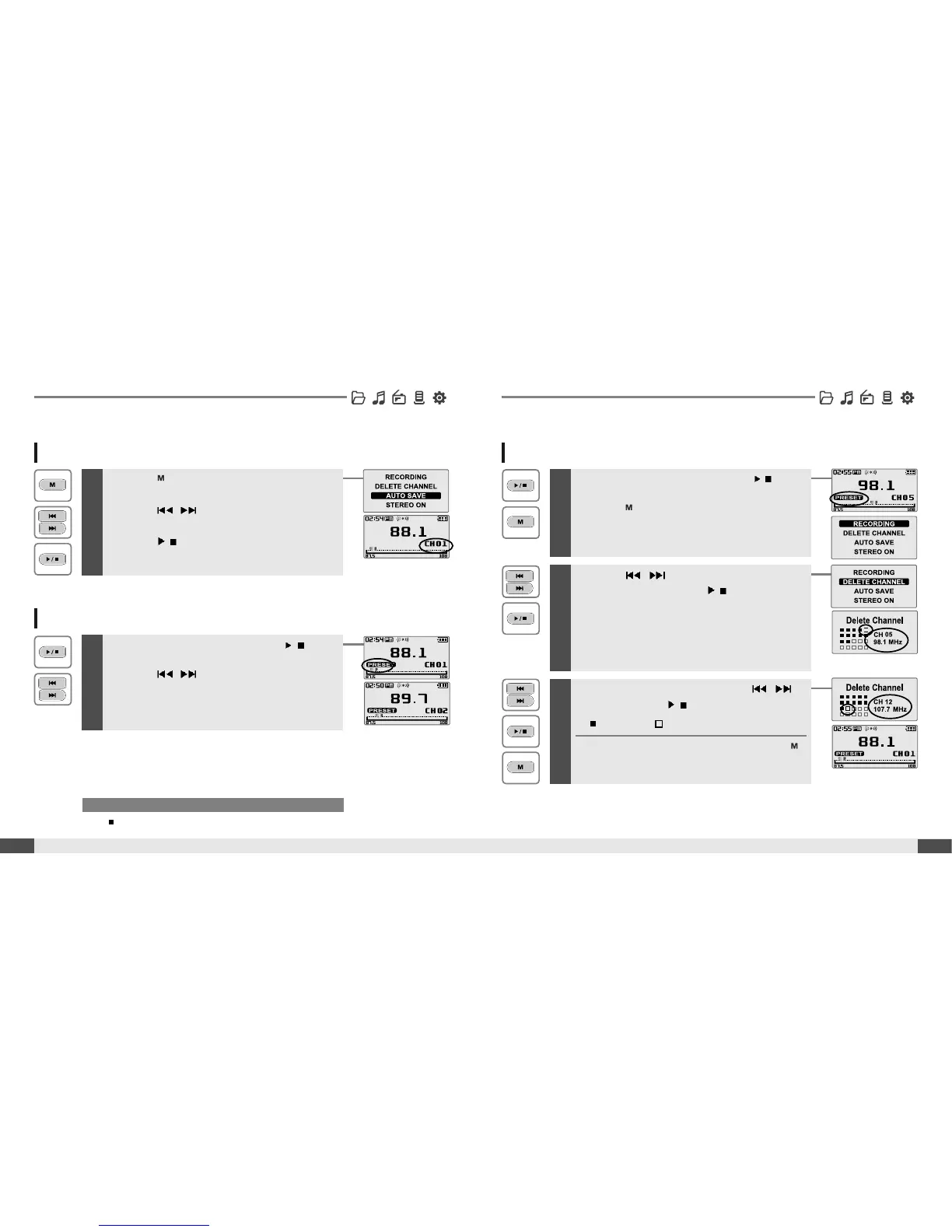Select channel number by using the ,
