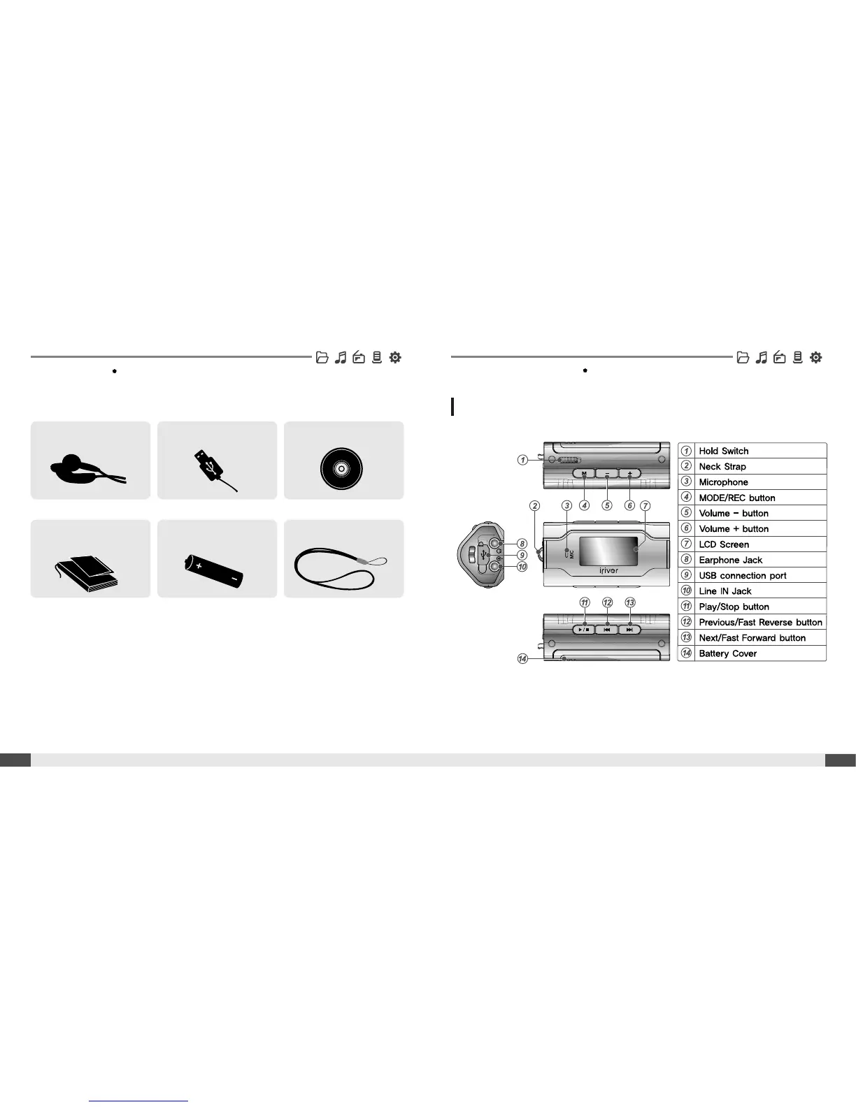 IRiver MP3 Player T30 - Chapter 1 I Getting Started; Components; Locating the Controls; Product